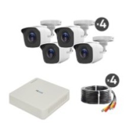 KIT TurboHD 720p / DVR 4 canales / 4 Cámaras Bala de Policarbonato / 4 Cables 18 Mts / 1 Fuente de Poder Profesional