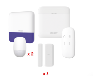 (AX PRO) KIT de Alarma AXP RO / Incluye: 1 Hub con bateria de respaldo / 2 Sensores PIR / 3 Contactos Magnéticos mini / 1 Control Remoto / 1 Sirena Inalambrica Exterior / WiFi / Compatible con Hik-Connect P2P